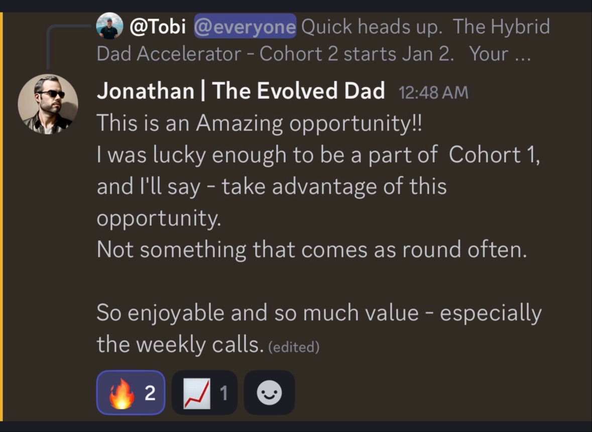 âTobi's lessons and leadership by example helped me grow as a father and leader. The Hybrid Dad framework is everything you need to become the leader your family as well as your community and business need. Highly recommend.â